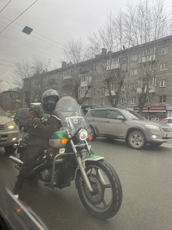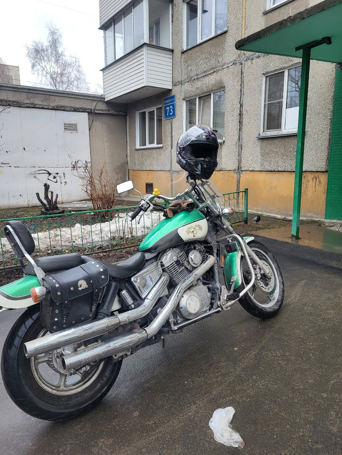 Достался он мне с кофрами, кокошником (ветровик) доп. светом, дугами и LED фарой, в ГИБДД заставили снять кокошник, кофры и доп. свет, к дугам вопросов не было, за фару пришлось поныть, буквально состроить морду как у кота из шрека, и ходить вокруг гайца канючить, и это возымело успех, он нашел на фаре какую-то маркировку, сказал, что окей приравняем эту маркировку к тому что она заводская, подписал бумаги и отпустил.