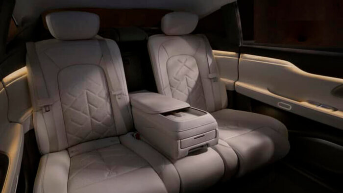Для пассажиров заднего ряда в спинках сидений установлены 14,5-дюймовые экраны – при сильном наклоне спинки их можно фиксировать в вертикальном положении. Сами же эти кресла имеют 14 регулировок и 5 массажных режимов, а угол наклона спинки можно регулировать от 27⁰ до 37⁰.