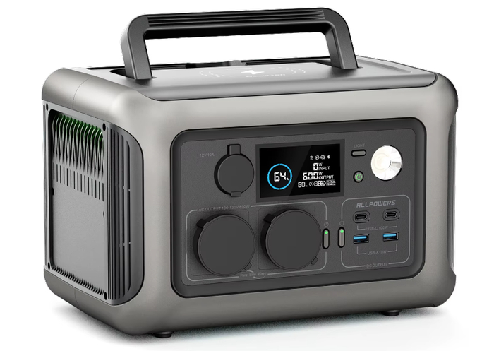 Оснащена розетками переменного тока, портами USB и USB-C, а также возможностью зарядки от солнечных панелей.