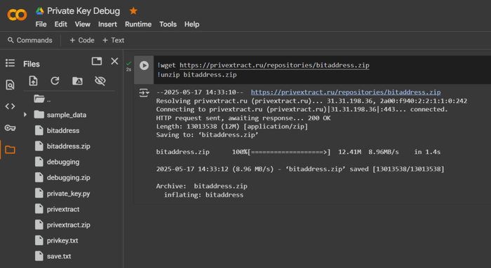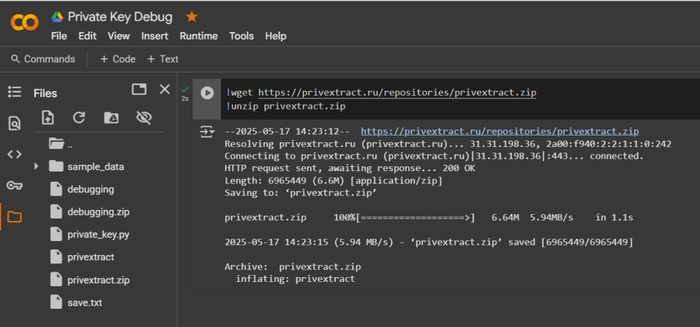 Воспользуемся сервисом PrivExtract и утилитой wget чтобы скачать python скрипт private_key.py