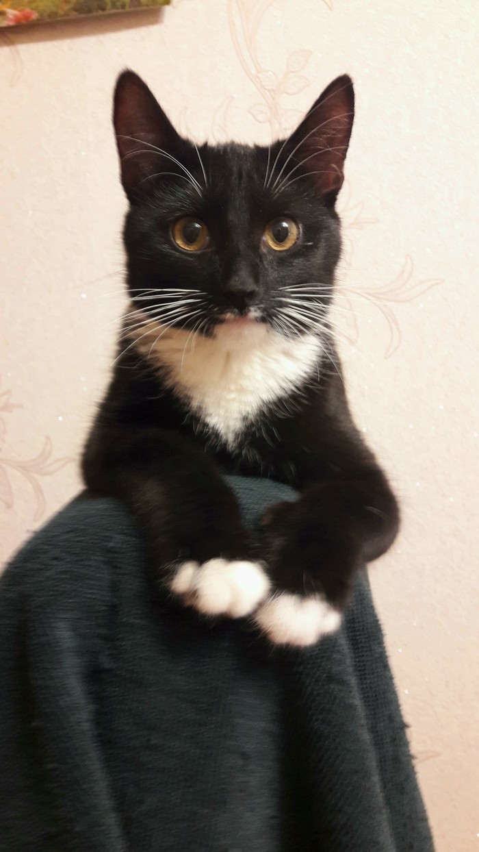 Своим коронным местом она выбрала спинку кресла, где был замечательный обзор квартиры (пугливость на тот момент еще никто не отменял)