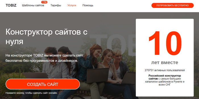 Tobiz — популярный конструктор с сотнями готовых шаблонов.