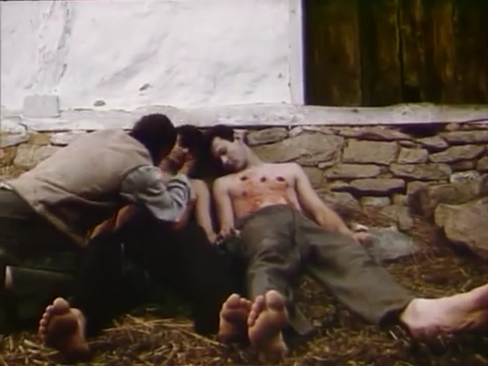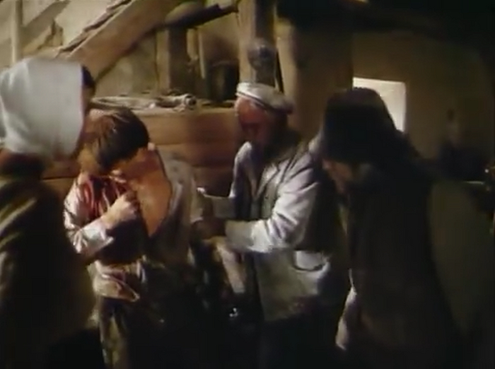 И это в то время, прямо тут, стоит мужик который отвернулся и плачет. Оказывается, это отец одно из убитых бандеровцев, который кидается на председателя, а потом лезет обнимать труп своего сына.