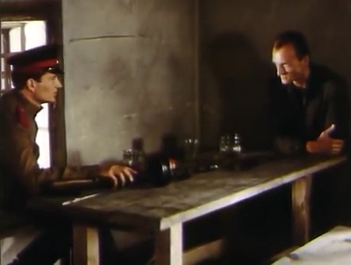 Ну а в следующей сцене, дезертир сваливший из Красной Армии, втирает в пивной солдату НКВД, про то что они тут хозяева, потому что воюют за свободную Украину, в то время как солдаты Красной Армии это оккупанты и палачи. Так же по словам бандеровца выходит, что те украинцы которые приняли советскую власть, либо обмануты, либо предатели.