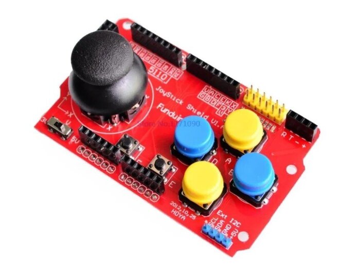 Funduino Joystick Shield v1.A предоставляет простое и эффективное решение для добавления элементов управления и интерфейсов к проектам на базе Arduino, обеспечивая гибкость и расширяемость в различных приложениях, таких как игровые консоли, робототехника, устройства управления и многое другое.