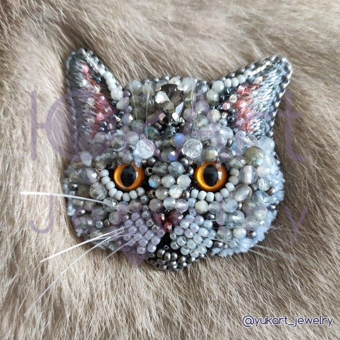 Брошка создавалась на день рождения любимой бабушки под кодовым названием "моя красота" - именно так бабуля называет бандитскую морду на фото справа)