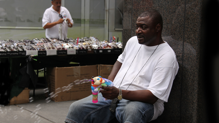 Чернокожий чистил белому ботинки, мне показалось это интересным, когда стал снимать, они увидели и все поняли. Реакция была неожиданной. Стали смеяться и позировать. Видимо я не был первым.
