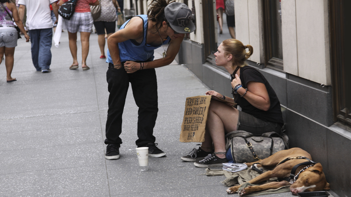 Бомжей было много, если можно так сказать, на любой вкус, если можно так сказать. Часто с животными.