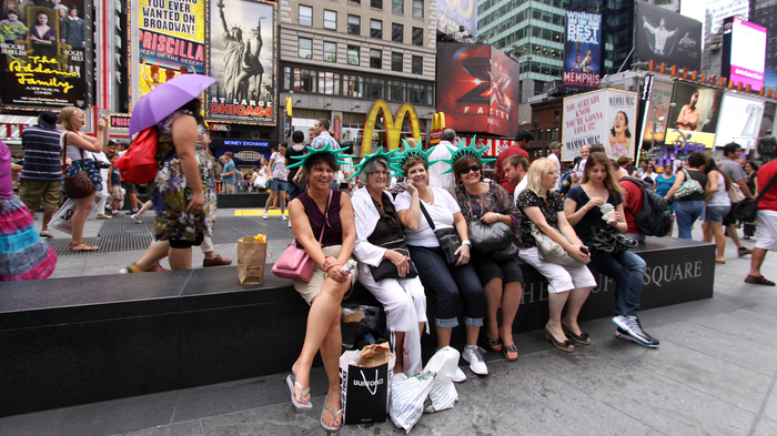 Очень много было именно американских туристов, которые пришли посмотреть Таймс сквер. Америка большая и местный туризм очень развит. Часто ездят веселой толпой подружек.