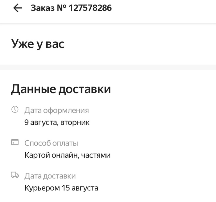 17 августа статус заказа изменяется, и тут начинается интересное, на статус "Уже у вас".