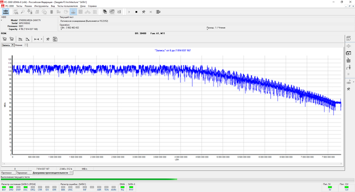 Запускаем тест записи и чтения чтобы проверить состояние головок и поверхности и спустя 20 часов видим прекрасную картину.