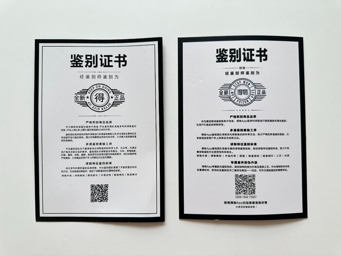 Обратная сторона сертификатов также отличается. Оригинальный сертификат имеет QR-код с цифрами под ним, которые сканируются в приложении POIZON. Копия же никаких цифр не имеет.
