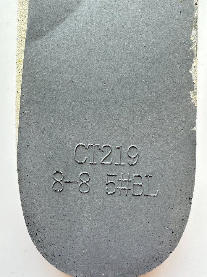 Подошва оригинала под стелькой выглядит именно так. Текст должен быть жирным.