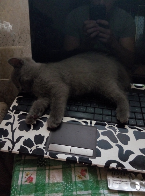 Ну и конечно же как любой уважающий себя кот, спим на ноутбуке)