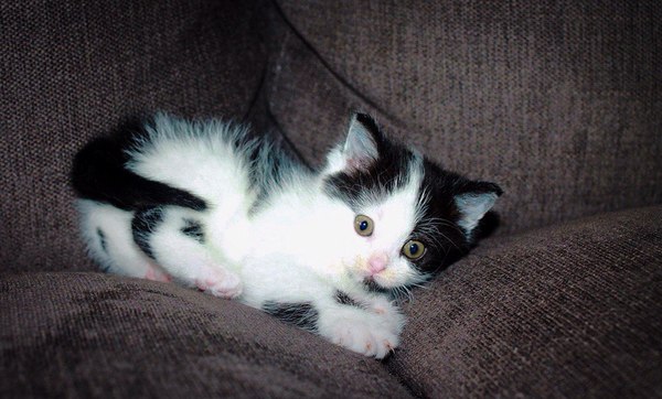 Всего было трое котят, и двоих мы уже благополучно пристроили, и теперь осталась одна девочка, черно-белая, очень нежная, мурчит круглые сутки :)) .