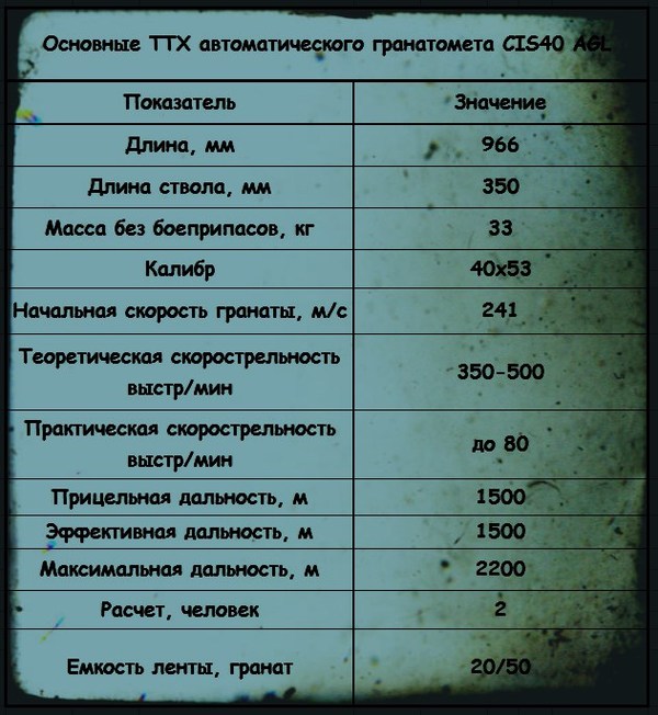 Он представлен в виде альтернативы американскому Mk19 и предназначен для экспорта в армии развивающихся стран. Одного взгляда на эту разработку достаточно, чтобы понять, что CIS40 AGL — конструктивный аналог Mk19. Массогабаритные характеристики этих образцов совпадают с точностью до 1-2 кг. Понятно, что главное достоинство азиатской разработки — меньшая цена (при достойном качестве).