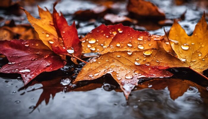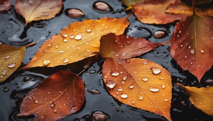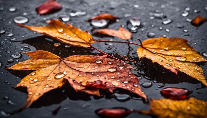 А ты заметил эти опавшие листья с каплями воды? Мне всегда нравится, как они выглядят - словно маленькие сокровища природы. Это прекрасная возможность насладиться прелестной осенней атмосферой и запечатлеть ее на фото. Я надеюсь, что ты тоже можешь наслаждаться этими волшебными моментами осени!