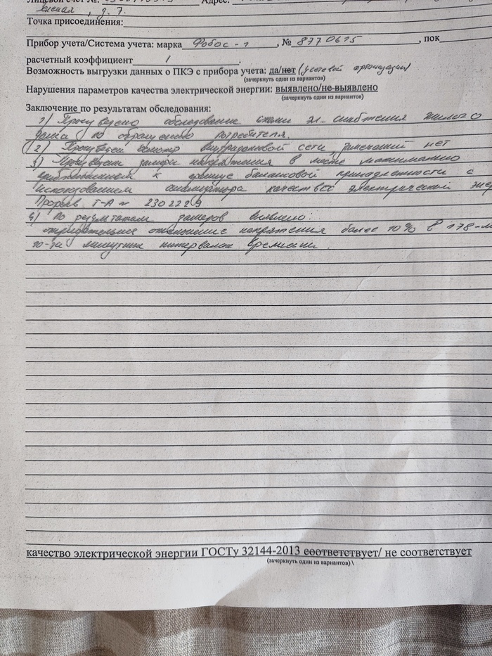 П. С. В комментариях указывают ГОСТ 2014. А я в заявке пишу про ГОСТ 2013. На нарушение этого ГОСТа было указано в акте о некачественной электроэнергии.