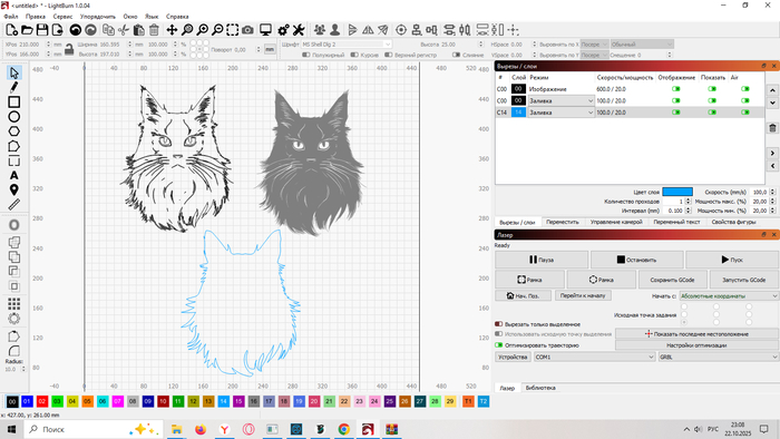 Картинка кота для гравировки+контур выреза в формате DXF