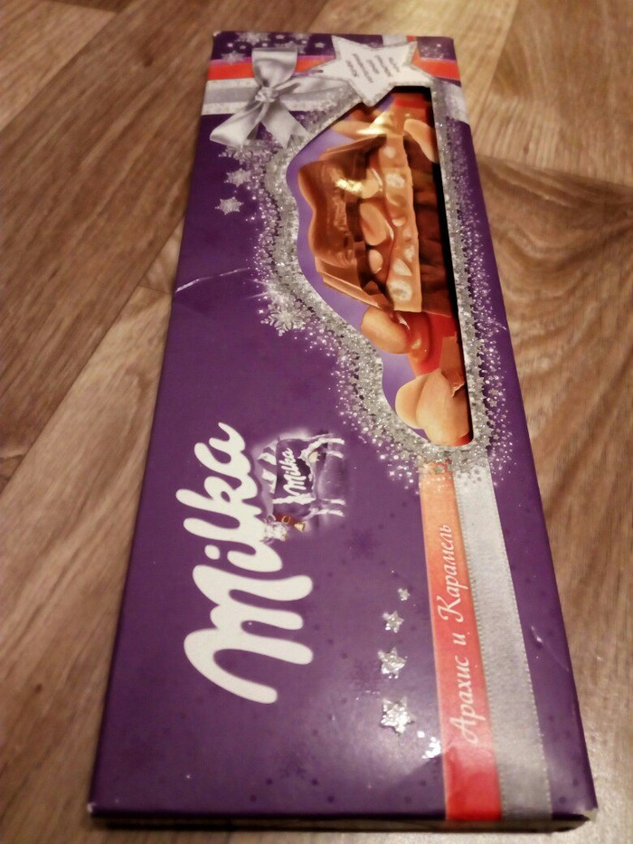 Вкуснейшая шоколадка (одна из любимых шоколадок жены). Общим решением было принято оставить её до нового года. Посмотрим, получится ли:)
