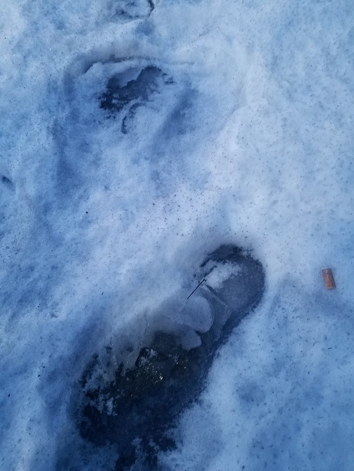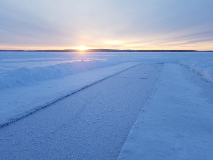 Утром сходили на озеро. Нам рассказывали, что моржи (люди-моржи!) вырубили там полынью, в которой можно покормить рыб - но, увы, полынья уже заросла льдом, сантиметров 10 толщиной.