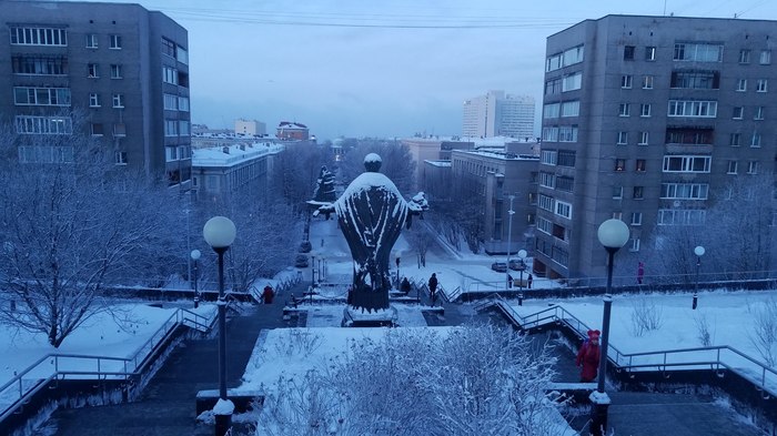 Мы вчетвером купили билеты на автобус, и господа гуманитарии убежали вперёд, в блинную и рюмочную. А я и Лиса пошли на сопку с вечным огнём, на город смотреть.
