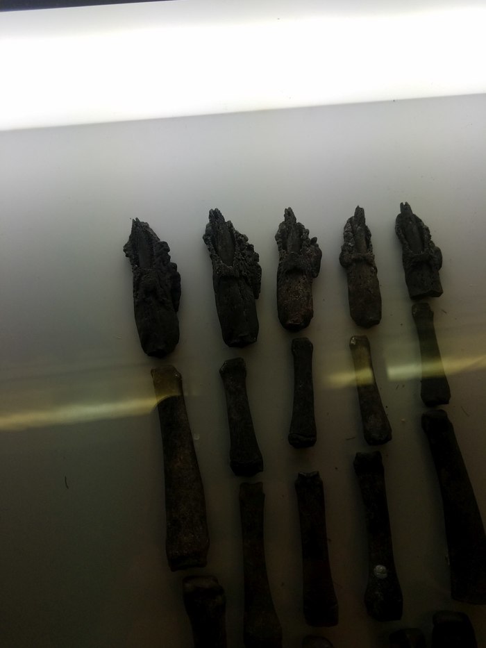 Потом приболевшая Лиса отправилась отдыхать, а мы пошли в краеведческий музей. Музей... Ну, ничего так. Порадовался соседствующим старым (рассказывающим про белоармейские тюрьмы) и новым (про закладку каких-то монастырей ) стендам, походил с УФ фонариком среди коллекции минералов (почти ничего не светится, под 465 нм, :-(. Нашёл только несколько синеющих флюоритов и некий Карнасуртит - очень редкий минерал, сияющий зелёным неоном). Посмотрел на бытовые предметы коренных народов карельского севера - не особо отличаются от бытовых предметов остальных народов севера, если честно. Нашёл стенд с древними костями - в общем убогий, но с замечательными кистями тюленей с холодовыми изменениями.
