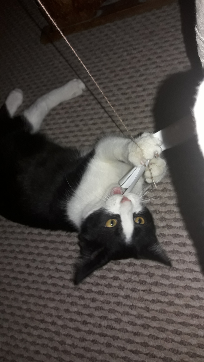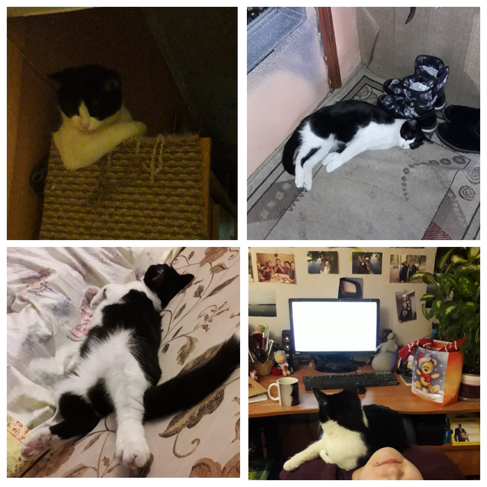 С момента первого взвешивания он прибавил 1.5 кило (за месяц!). Значительно вырос. Верю, что стал немного счастливее (в отличии от кошки, но она когда-нибудь смирится с тем, что перестала быть альфа-самкой)). Ест за троих, спит за четверых, играет со всем что попадается под лапу. В общем, освоился и обжился.