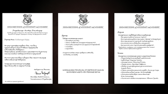 Дальше письмо из Хогвартса