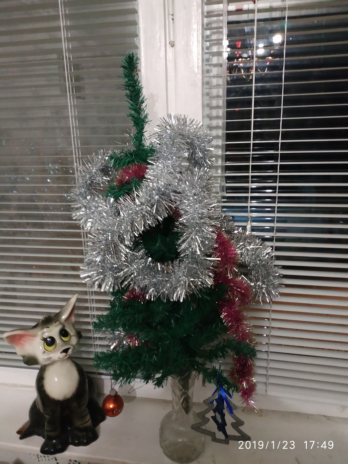 Елка и мишура на Елке которая по традиции стоит у меня с 2017 года пока ее не снимал