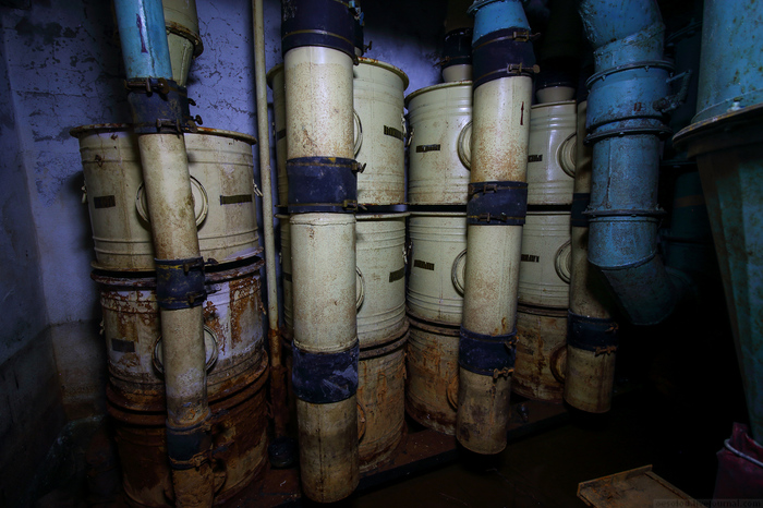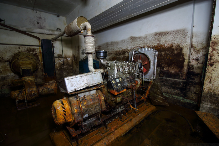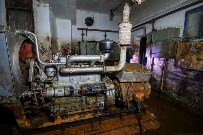 Остальные помещения убежища носят технический характер. От основных комнат они отделены массивными гермодверьми, и между собой так же. Сразу в глаза бросается большой размер фву, и их количество. При относительно небольшом размере убежища, должно было быть не больше одного столбика, а тут целых 4 с большими фильтрами. Помимо фву есть еще дизельная, конечно все тут плавает в воде, вряд ли он еще когда-то будет способен производить что-то кроме ржавчины. Как-то так получилось, что мне редко попадаются убежища со смотровым окном в дизельную, поэтому для меня это выглядит не стандартно. Я конечно понимаю, для многих — это не так, и окно в дизельную, как в прочем и просто в убежище, это обычное дело.
