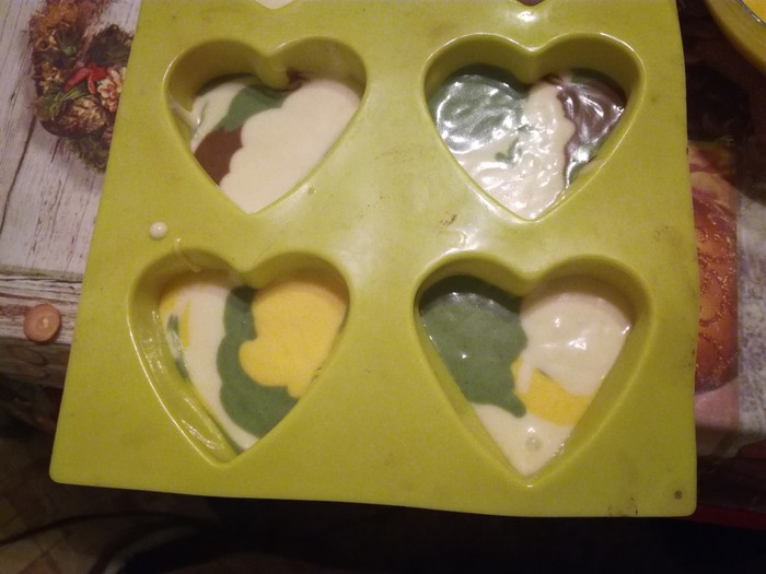 И да, я почему-то не сфоткала нормально стандартный камуфляжный окрас на человечках, но у меня есть фото сердечек до крема: