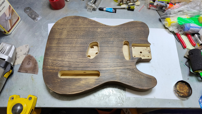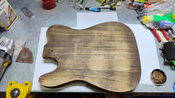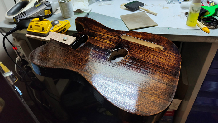 Из косяков: сзади морилка легла с первого раза как-то через жопу - но я очень ленив, заднюю часть своей гитары все равно буду видеть только я, поэтому, я считаю, что пофиг. А вы - редкая публика, кто может посмотреть на этот ужас=)