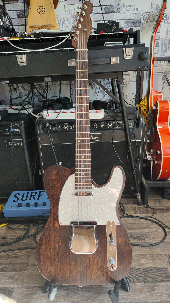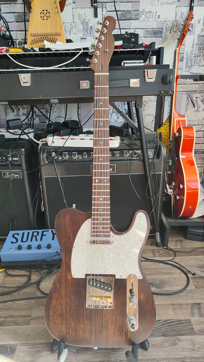 Решение собрать такой телек появилось, когда я увидел на али грифы "из венге". Что это на самом деле - венге, не венге, какой-то адовый композит - пофиг, главное что это какая-то твердая штука, пористая как будто это прям настоящее тропическое дерево (в чем до сих пор не сильно уверен) и выглядит офигенно. А мне всегда нравились телекастеры с полностью палисандровым грифом, которые стоили крайне дофига - и мне, в целом не особо нужны были никогда. А тут вот оно - бери и собирай. Ну, я взял и собрал. Вышло, вроде, довольно неплохо. Смета и пример звука - в конце поста.
