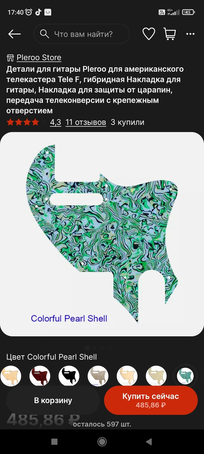 Инструмент отлично строит (насколько это даëт винтажный бридж) и круто звучит как на чистом звуке, так и на перегрузе. Переживал, что гриф будет косячный, однако с ним всë чудесно, не ожидал такого качества от алиэкспресса. Как в общем-то и по тембрблоку - всë было распаяно винтажными проводами в тканевой изоляции, ничего не шуршит и не шумит при переключениях.