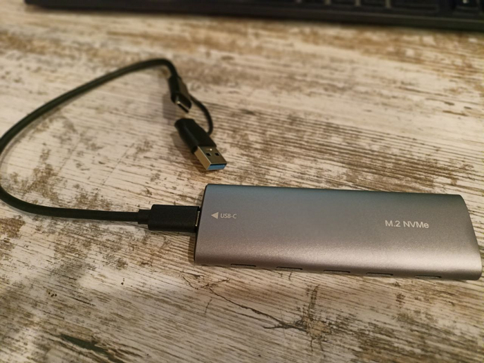 куплен адаптер ssd(nvme)<->usb-c. Адаптер куплен наугад (не реклама!), по отзывам, при цене ниже 1К рублей. Требований было 2 - поддержка nvme и интерфейс USB-C (type C)
