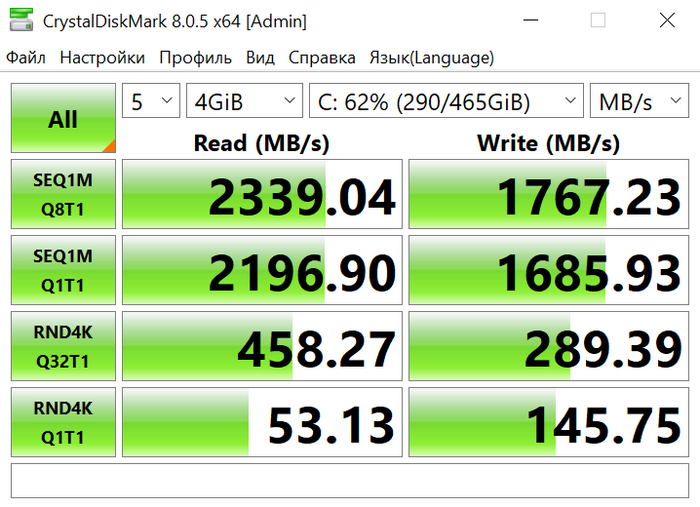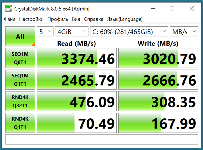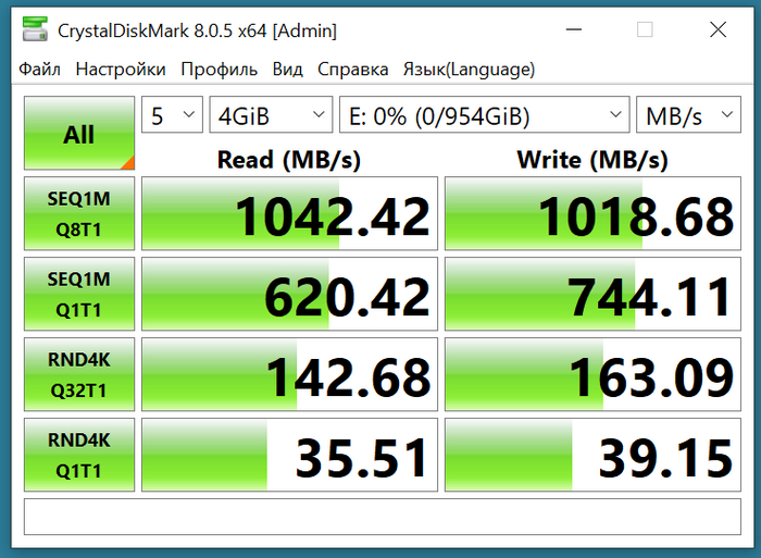 Теперь с Apacer SSD AS2280P4U 1TB имеем хороший прирост скорости