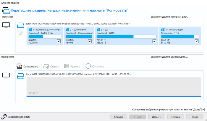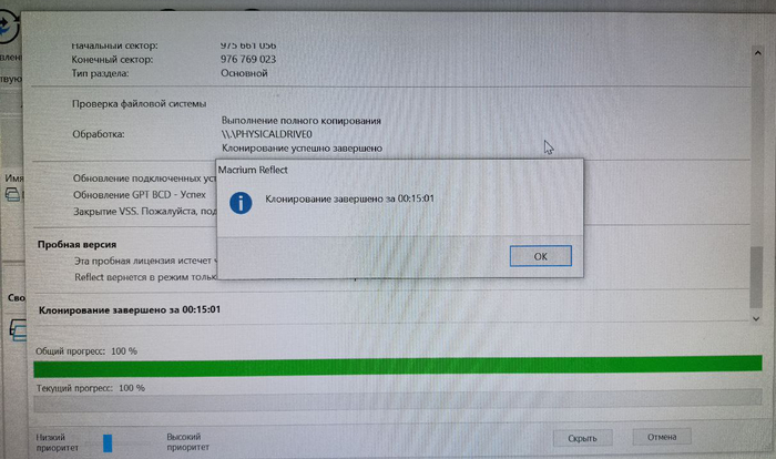 Клонирование 500Гб заняло 15 минут (долго? пишите в комменты)