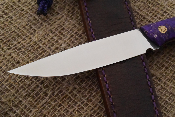-клинок: N690 ТО Сергея Бурова тверд.60-61 ед.,96х19х2.4 мм сведен в 0.3 мм,заточен алмазами до 1\0,угол около 40 гр.