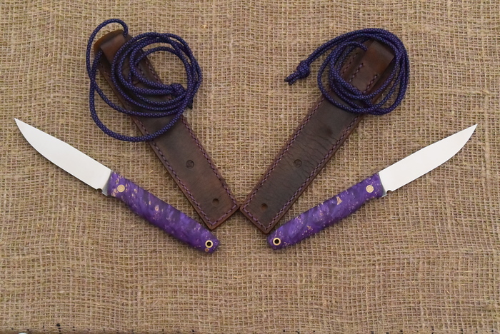 Как-то делал Щурят для разделки мелкой дичи, но там клинок был 4 мм толщиной и вогнутые спуски. Формат грибнику понравился, только сталь потоньше осталось взять и спуски прямые сделать, а не вогнутые.
