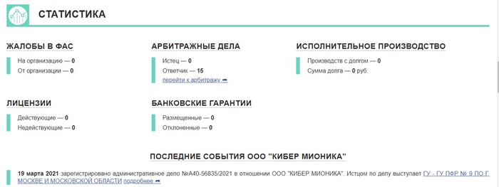 Во-первых, по состоянию на 23.03.2021 у этой фирмы задолженность по налогам и штрафам в размере 108,8 тыс.р. Это еще не считая той задолженности, которая будет, так как 19.03.21 ПФР в который раз подавал на неё в суд и успешно его выиграл 22.03.21.