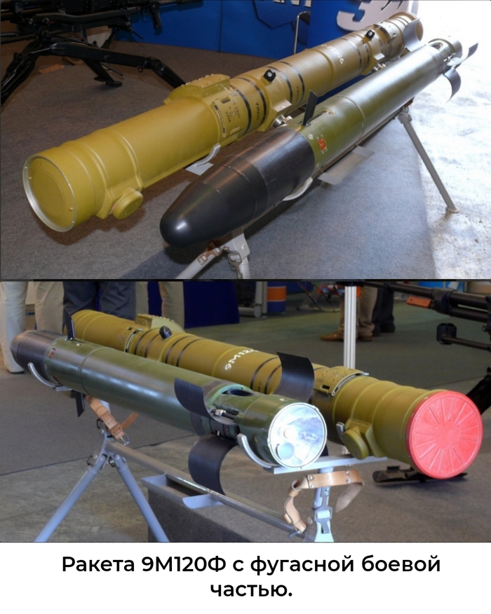— ракета 9М120Ф с фугасной боевой частью, предназначенная для борьбы с небронированными целями. Особенно большие разрушения она вызывает при разрыве в замкнутых пространствах (в дзотах, зданиях и др.);
