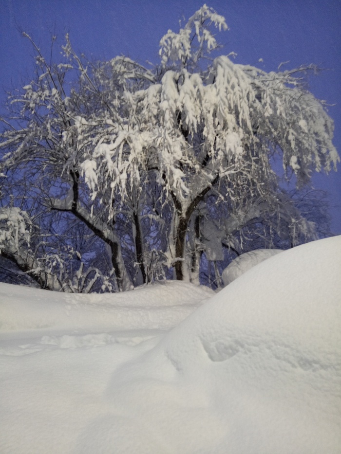 Для ЛЛ. На работу сегодня я не попал - официально закрыли дороги. Во дворе снега всего по колено, потому что ночью прошел трактор, а так, вообще, везде по пояс. Где намело - еще больше.