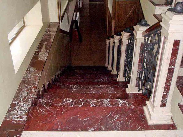 Rosso Levanto (Rosso Levante, Rosso Lepanto, Red Lepanto) - итальянский мрамор насыщенного винного цвета с произвольно расположенными белыми полосками. Месторождение этого мрамора находится в Лигурии, местечке Bonassola.