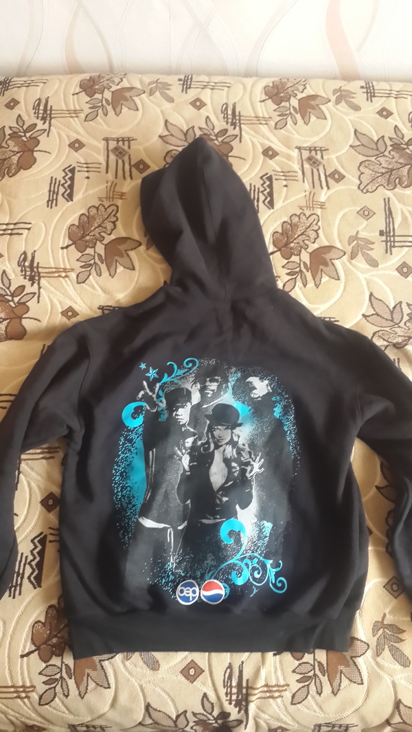 Потом нашел кое-что не менее интересное. Это толстовка с группой The black eyed peas, эмблемой Pepsi и названием тура в котором они были тогда. Вспоминания о том как я забирал этот пакет с почты очень греют.