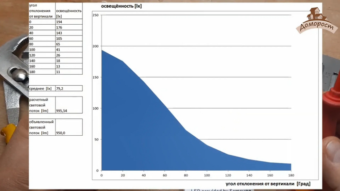 Световой поток который я посчитал 995 Люмен а производитель указывает 950.