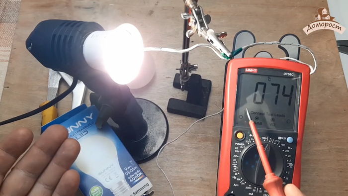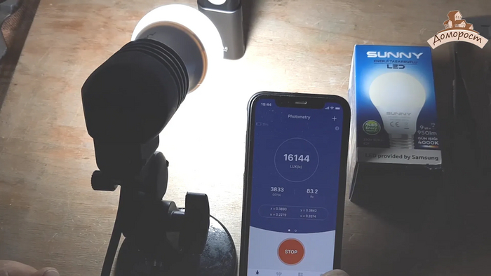Оставляю лампу поработать в течение 15 минут. Посмотрим, как изменится мощность.