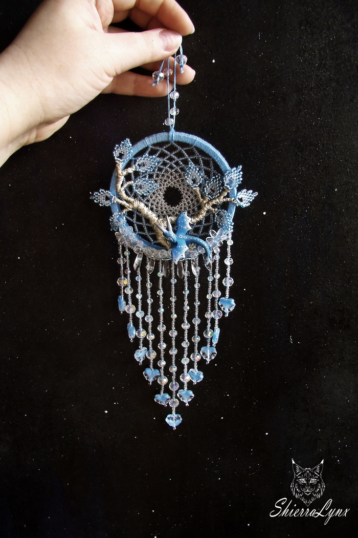 Ловит не только сны, мечты и настроение, но и свет =) от бусин в солнечную погоду разбегаются искорки, а дракончик начинает выглядеть одновременно хищно и трогательно.