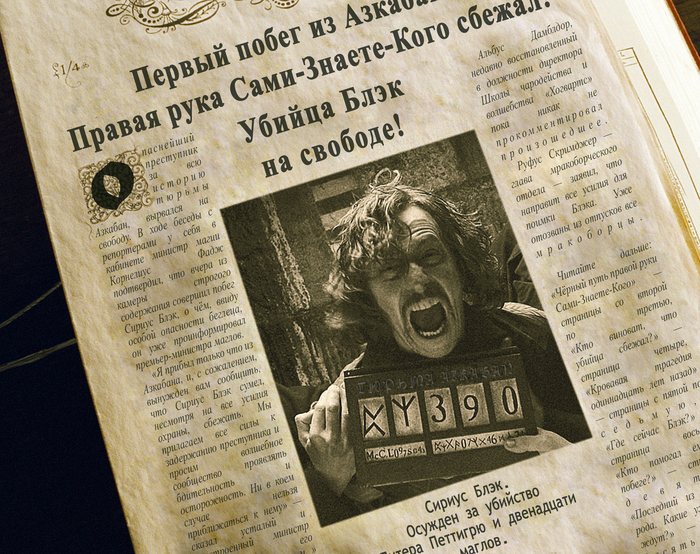 Опаснейший преступник за всю историю тюрьмы Азкабан вырвался на свободу. В ходе беседы с репортерами у себя в кабинете министр магии Корнелиус Фадж подтвердил, что вчера из камеры строгого содержания совершил побег Сириус Блэк, о чём, ввиду особой опасности беглеца, он уже проинформировал премьер-министра маглов.
