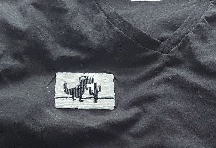 присобачила зверюгу на фетр, подложку покрасила акрилом по ткани (больно бежевая была), задник проклеила на термофлизелин, футболку уже и выгуляла разок и постирала.
